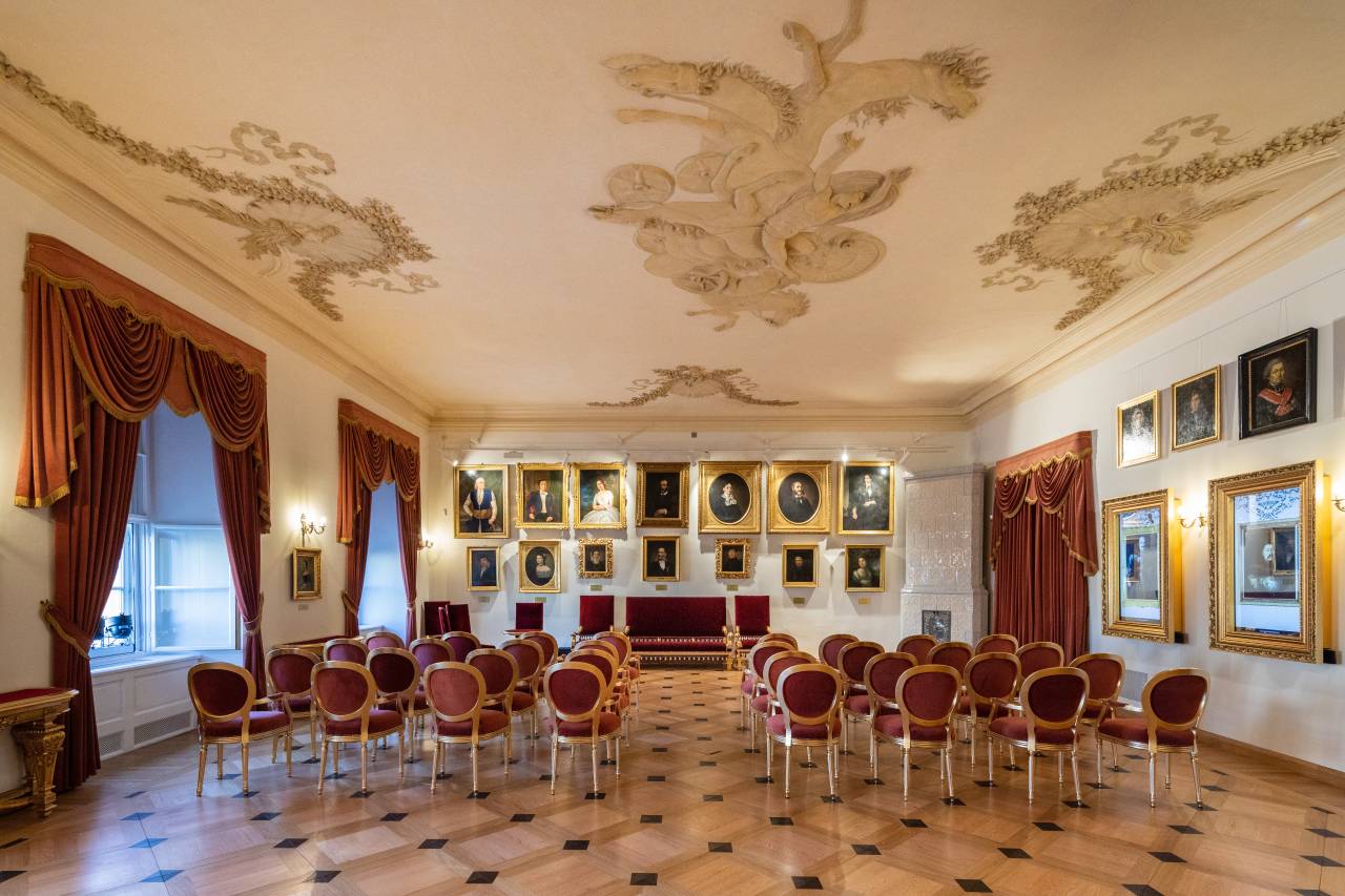 The building has two passenger lifts and a platform for people with disabilities. Passenger lift in the part open to visitors – wing B (west), cabin dimensions 1.05 x 2.05 m; with voice announcements; buttons with Braille. Passenger lift in the part open to visitors – wing A (east), cabin dimensions 1.4 x 1.05 m; with voice announcements; buttons with Braille. Passenger lift in the administrative section – wing C, cabin dimensions 1.3 x 1.05 m; buttons with Braille alphabet. Platform for persons with disabilities at the entrance to the administrative section, operated by security staff. Platform for persons with disabilities leading to the permanent exhibition starting in the basement of the palace on floor -1 (maximum load capacity 160 kg)